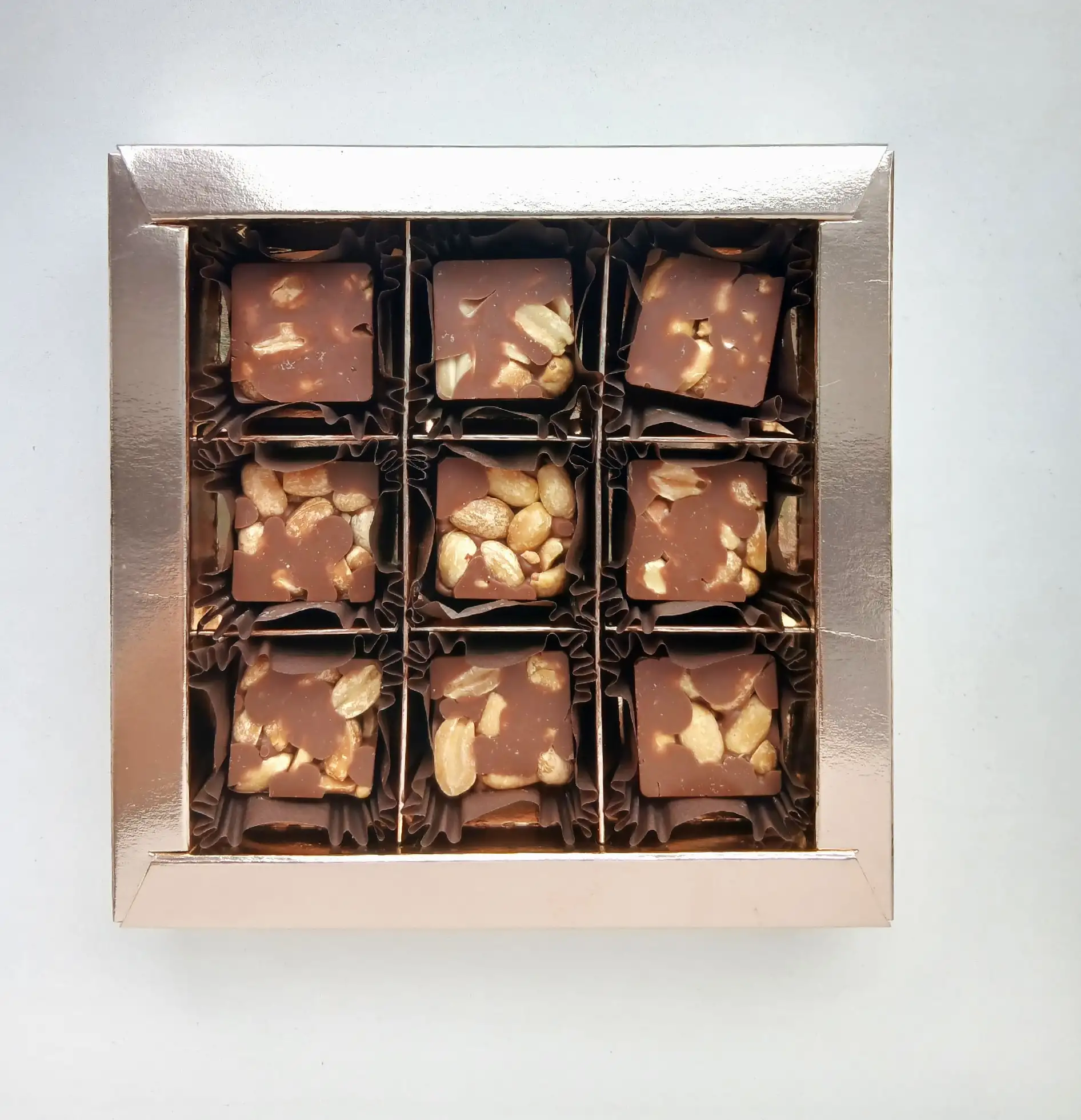 Изысканный подарочный набор конфет ручной работы — это воплощение вкуса и внимания к деталям. Каждая шоколадная конфета в этом наборе создана вручную с использованием вкусного шоколада и начинкой из отборного жареного арахиса с солью. Это не просто конфеты в подарок, а готовое элегантное решение для особого случая. Используются только высококачественные ингредиенты, что гарантирует насыщенный вкус и идеальный вид шоколада ручной работы. Каждая конфета — это уникальный десерт, созданный с вниманием к деталям и благородству натурального вкуса. Этот подарочный набор станет идеальным решением для поздравления с любым праздником родным и близким людям, друзьям и коллегам, или просто как знак внимания дорогому человеку. Стильная коробка конфет ручной работы оформлена в красивую упаковку (коробка может быть из белого или крафт картона), не требующей дополнительного декора, — вам останется только вручить ее. Этот набор шоколадных конфет подарочный создан для тех, кто ищет элегантный подарок близким, коллегам, начальству. Позвольте себе дарить радость и положительные эмоции с нашими шоколадными конфетами ручной работы — это выбор тех, кто ценит изысканность и хочет удивить по-настоящему, сделав подарок незабываемым. Конфеты создаются вручную по авторскому рецепту, что сохраняет высокое качество и неповторимость, превращая каждый кусочек в настоящую вкусную историю. Мы создаем праздник для вас через вкусовые композиции каждой конфеты, потому что истинная теплота идет от души! Наши лакомства для тех, кто бережно относится к своему здоровью и выбирает полезные продукты без компромиссов во вкусе. Поэтому мы используем натуральные компоненты, так как желаем всегда отдавать самое лучшее, престиж и уверенность, что все сделано идеально! Авторские конфеты - это возможность прикоснуться к тому, что невозможно описать словами, но важно: искренним чувствам, радости и счастливым моментам. Живите вкусно!