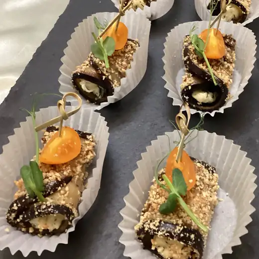 Баклажанные рулетики с сырной начинкой — это изысканное и вкусное блюдо, которое станет украшением любого стола. Сочетание нежного сыра, ароматных грецких орехов и хрустящей панировки создаёт неповторимый вкус.