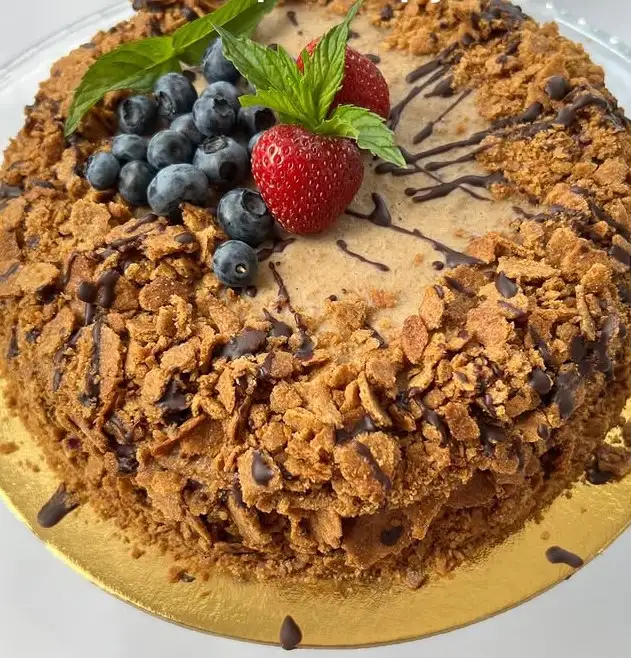 Может быть с вишней или без Состав: Цельнозерновая мука Кокосовый сахар Мед Сливочное веган масло Кокосовое молоко Кукурузный крахмал