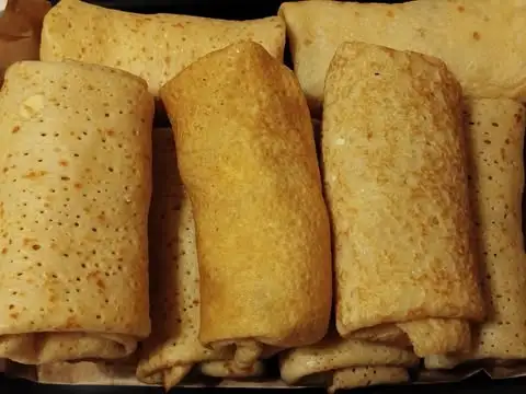 Начинки в ассортименте: — курица, яйцо и сыр — 22 руб./кг; — ветчина и сыр — 22 руб./кг; — творог — 22 руб./кг; — курица, лук и грибы — 22 руб./кг; — слабосолёная форель и творожный сыр — 30 руб./кг.