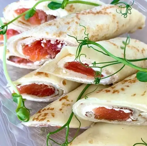 Творожный сыр с зеленью, форель, черри, микрозелень