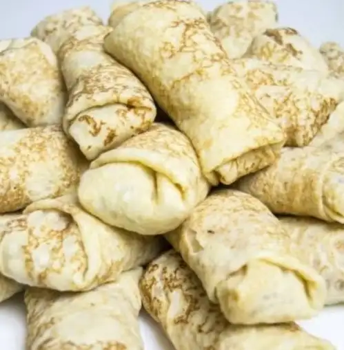 Состав: блинчики ПФ, курица, рис, яйцо, лук, соль, специи, майнез