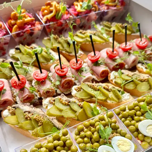 🔸 Салат Оливье — этот классический фаворит не нуждается в представлении. Уютный вкус и ностальгия в каждой ложке! 🔸 Салат Винегрет — яркий, как осенние листья! Свежие овощи и кислинка маринованных огурчиков делают его настоящим взрывом свежести! 🔸 Брускета со шпротами — простое, но невероятно вкусное угощение. Хрустящий хлеб и нежные шпроты — идеальное сочетание для любителей морепродуктов! 🔸 Канапе с грудинкой на Бородинском хлебе — этот маленький кусочек счастья с насыщенным вкусом
