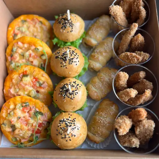 • мини-пицца (4 шт) • бургеры (4 шт) • сосиска в тесте (4 шт) • наггетсы (4 шт)