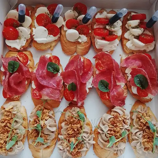 Брускетта Капрезе Брускетта с паштетом фуагра и луком фри Брускетта с бедром индейки
