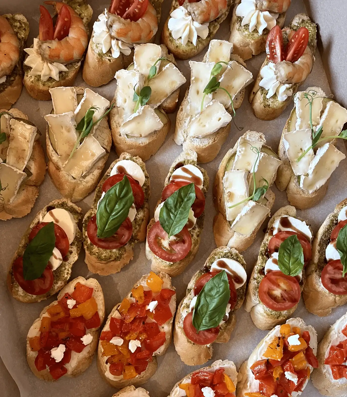 Cостав: Брускетта с креветкой, сливочным сыром и песто Брускетта с сыром Бри и грушей Брускетта с сыром фета и печеным перцем Брускетта с моцареллой, черри и песто Стоимость: М — 102 р Сет на компанию из 2-3 человек Вес: 800 г — 16 шт L — 123 р Сет на компанию из 3-4 человека Вес: 1200 г — 24 шт XL — 139 р Сет на компанию из 5-6 человек Вес: 1600 г — 32 шт