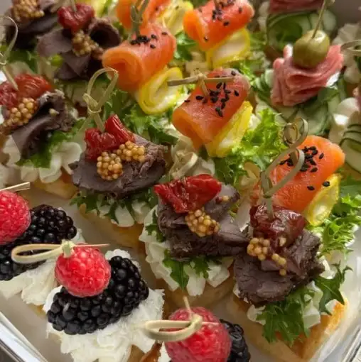— С говядиной — С форелью — С салями — С ягодами