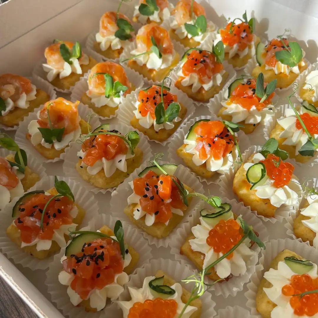 10 шт — с красной икрой 10 шт — с форелью 10 шт — с креветкой