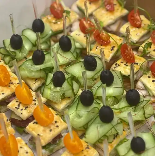 С солями и соленым огурчиком — 10 штук С форелью и творожным сыром — 10 штук С ветчиной и томатами Черри — 10 штук