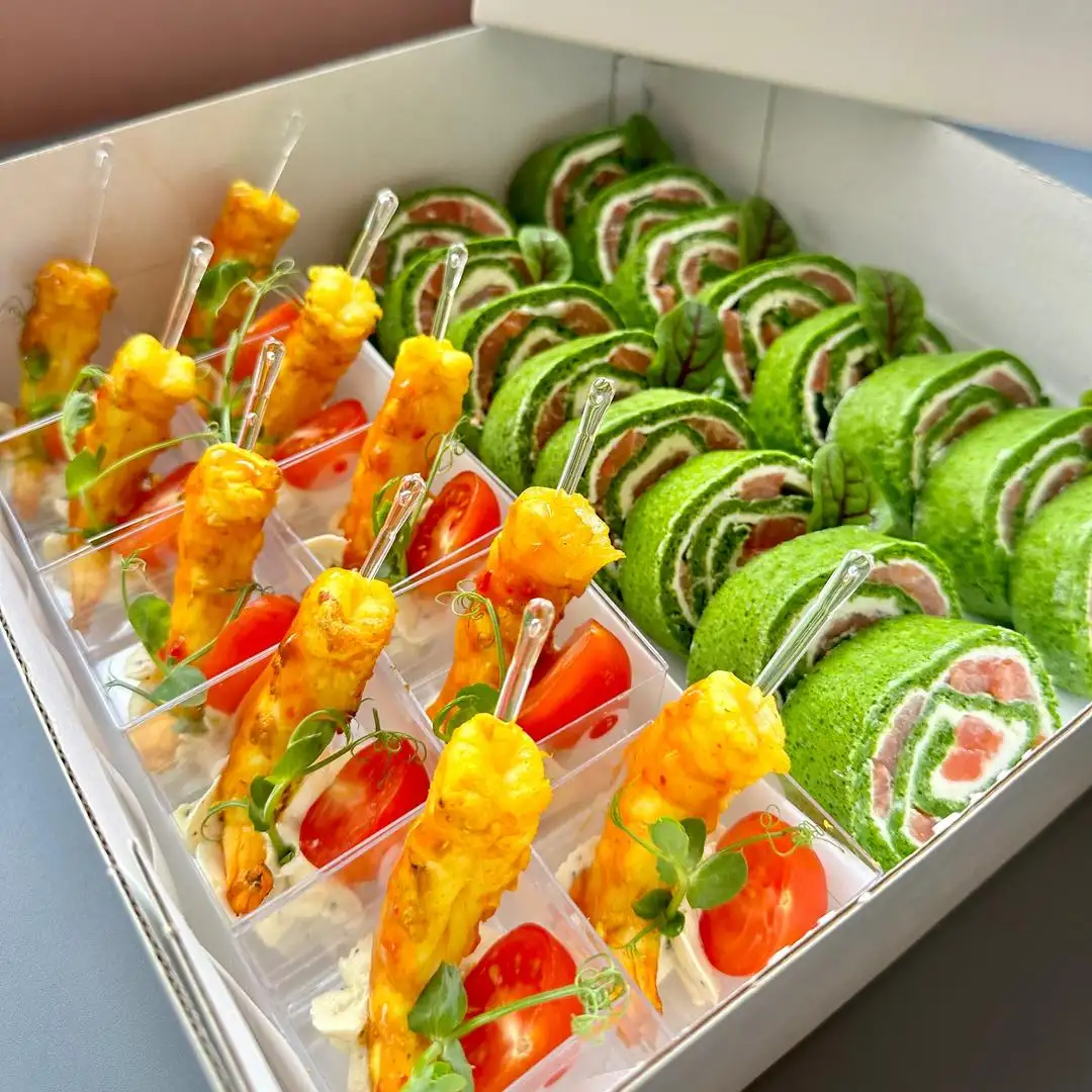Шпинатный рулет 15 шт Чесночные креветки с кремом васаби 10 шт