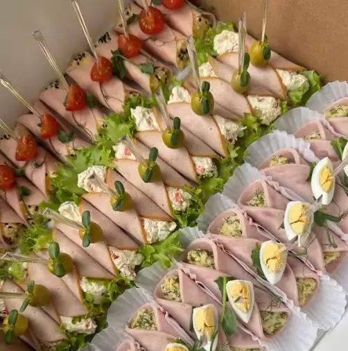 Куриные рулетики с перцем и маринованными огурчиками — 10 шт Рулетики с сыром и чесноком — 10 шт Рулетики с сыром , чесноком и зеленью- 10 шт