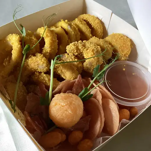 Креветки в кляре — это изысканное и лёгкое блюдо, которое станет прекрасным дополнением к вашему столу. Нежное мясо креветок, покрытое хрустящей золотистой корочкой, непременно порадует вас своим вкусом. 370 г