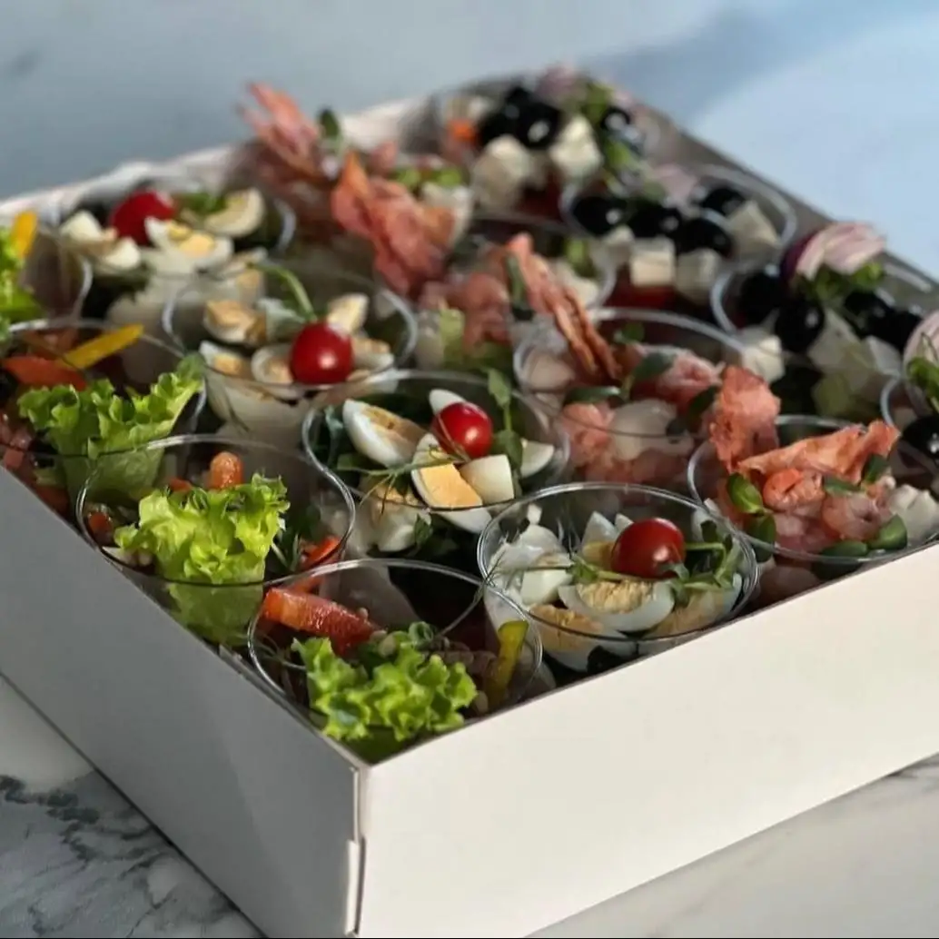 • с говядиной и овощами • с копчёной курицей • с креветками и беконом • греческий