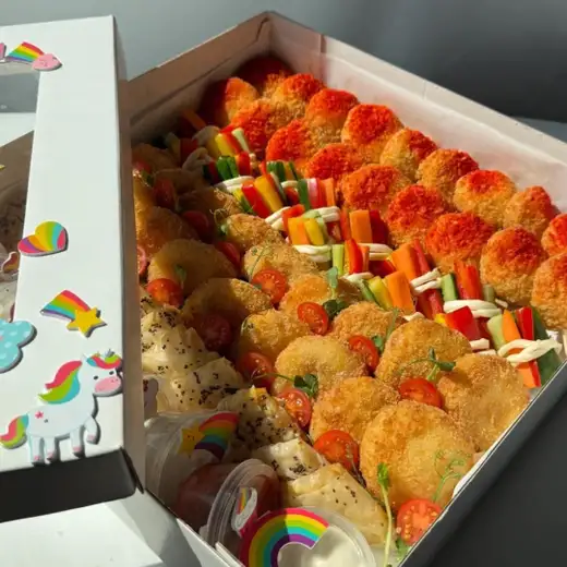 Куриный пломбир — 18 шт Овощные карандаши — 16 шт Картофельные мячики — 18 шт Хрустящие треугольники — 12 шт