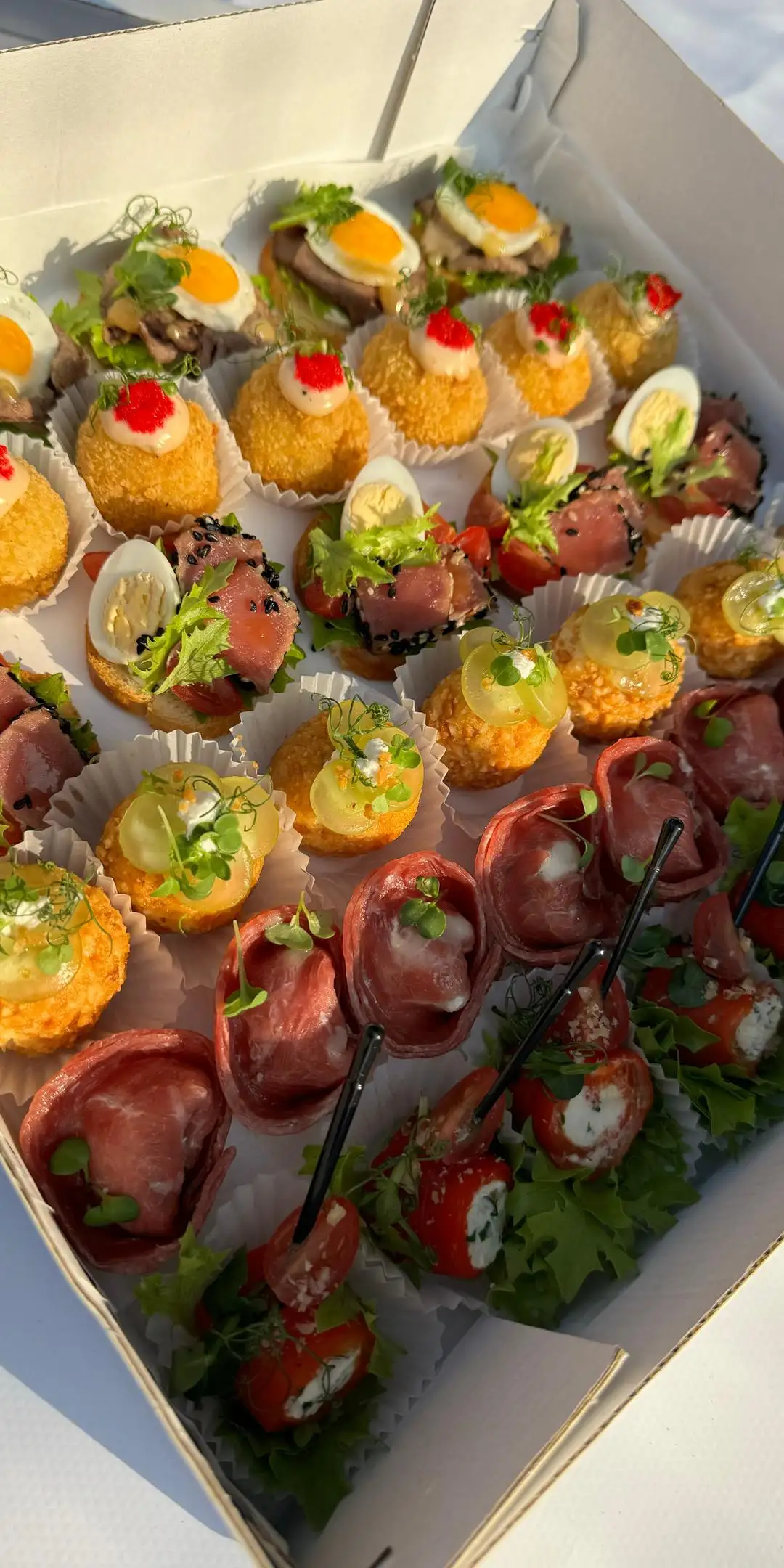 Тапас с говядиной Тапас с тунцом Картофельные шарики Пельмешки закусочные Рулетик из перца Чиз болл с виноградом Соус медово-горчичный