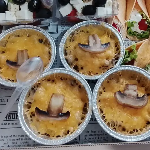 Грибной Жульен — жареные шампиньоны с луком, с добавлением сметаны и покрытые вкуснейшей сырной шапочкой.