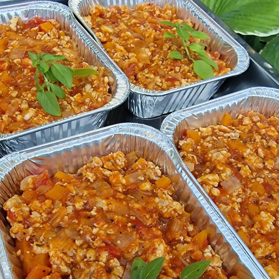 Состав: филе куриное, филе бедра, морковь, лук, перец болгарский (или сельдерей), томатная паста, масло растительное, томаты, соль, прованские травы. 102 ккал. Белки-9, жиры-4, углеводы-7. Вес 1 шт: 200 гр.