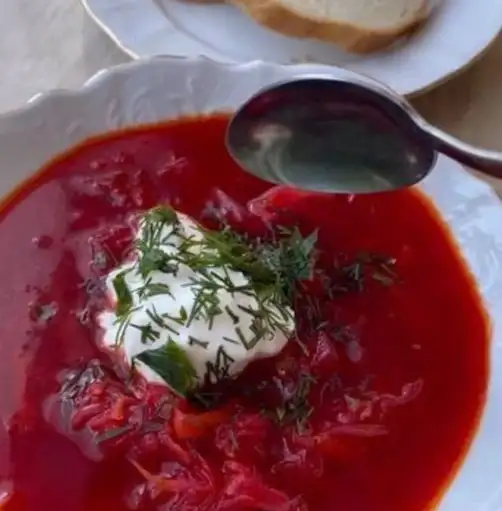 Порции по 400-700 гр. Состав: бульон, свекла отварная, лук репчатый, морковь, перец болгарский, картофель, томат, мясо курицы, соль, сахар, специи.