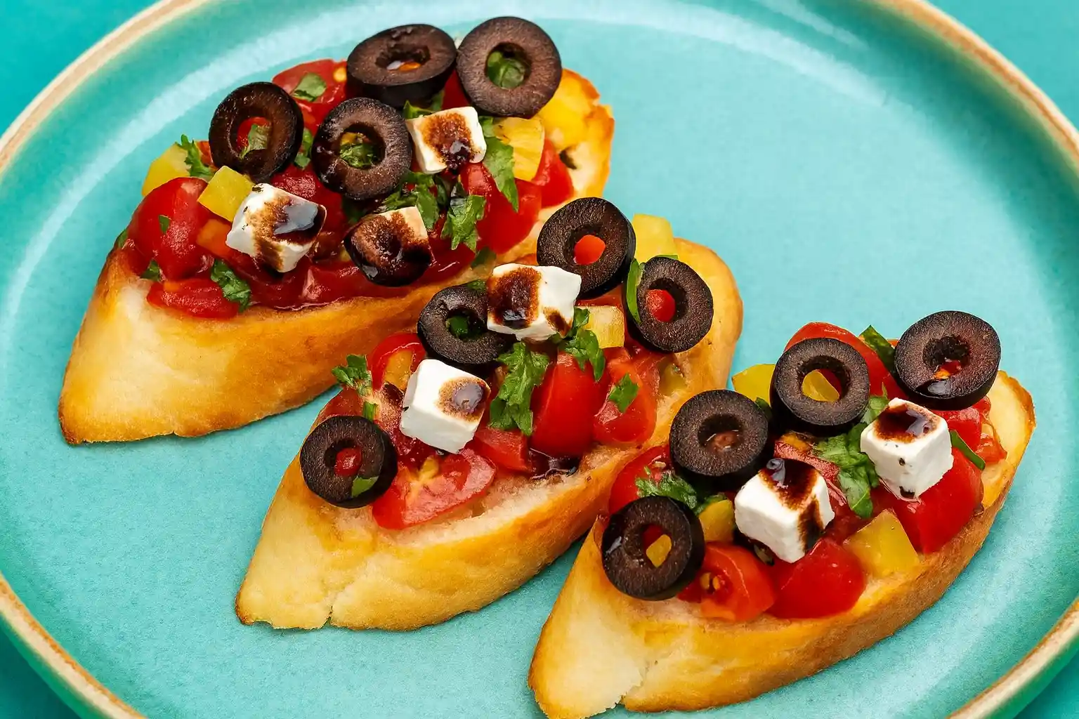 Брускетта «Греческая» — лёгкая закуска с овощами, оливками и сыром, напоминающая классический греческий салат. Брускетта с карбонатом и черри — хрустящий тост с нежным карбонатом и сочными томатами черри.