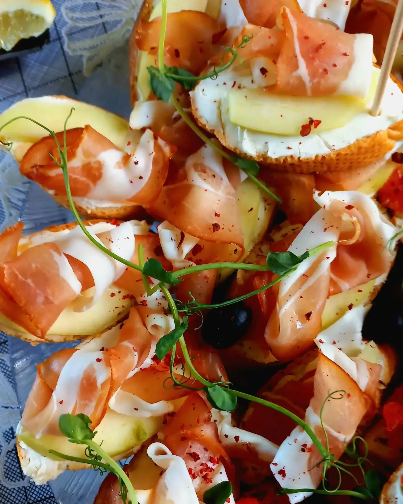 В ассортименте: — лосось терияки — креветка и гуакамоле — парма и бри — груша дор-блю — Цезарь — фуа-гра