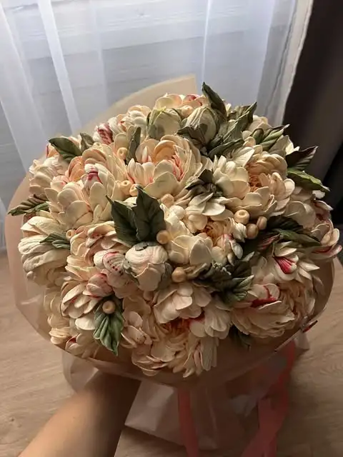 Нежный и оригинальный букет из зефира — это вкусный подарок, который сочетает в себе красоту и сладкое удовольствие. Воздушный зефир, оформленный в виде цветов, выглядит эффектно, долго сохраняет свежесть и дарит тёплые эмоции с первого взгляда. Идеальный вариант для праздника или приятного сюрприза без повода.