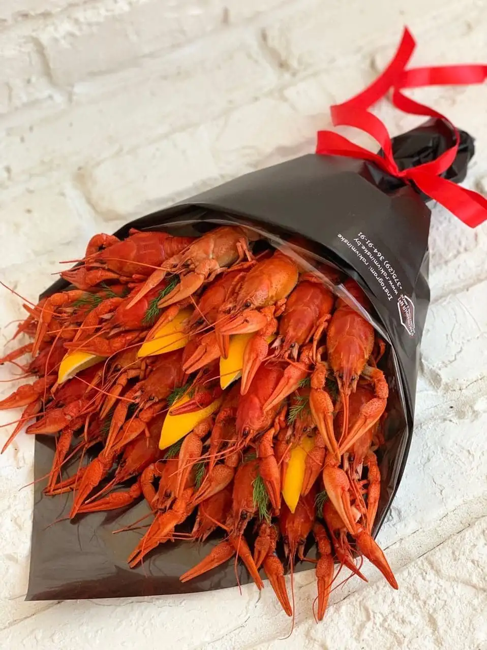 Наполнение: - 20 раков размера M - лимоны - зелень - подарочная упаковка Доставляем в прозрачной пленке (слюде).