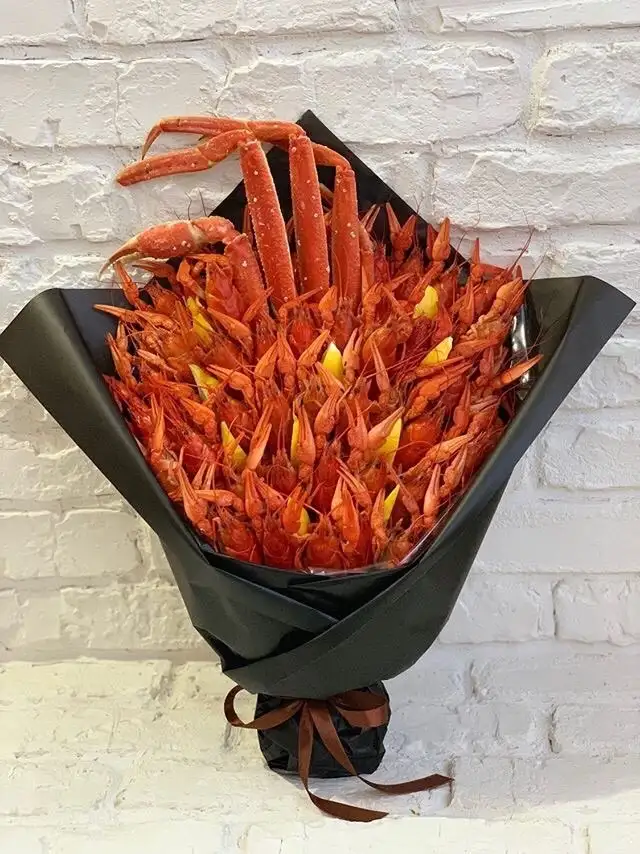 Наполнение: - 50 раков размера S - конечность краба - лимоны - зелень - подарочная упаковка Доставляем в прозрачной пленке (слюде).