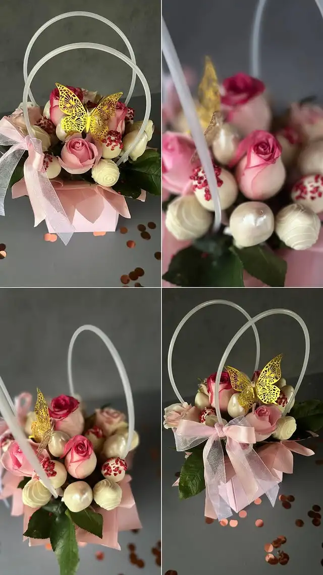 Возможно добавление живых цветов. Перед употреблением подержать при комнатной температуре 10–15 минут. Желательно употребить ягоду в течение первых 12 часов. Хранить при +15–20 градусов. Следующие 12 часов хранить в холодильнике при температуре +2–7 градусов.
