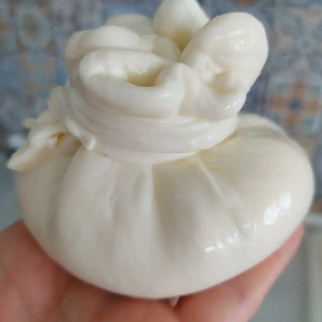 Нежная, сливочная сердцевина и тонкая мягкая корочка делают буррату идеальной для салатов, закусок и даже просто с хрустящим хлебом. Каждый кусочек тает во рту, даря истинное наслаждение вкусом. Средний вес: 330–350 г.