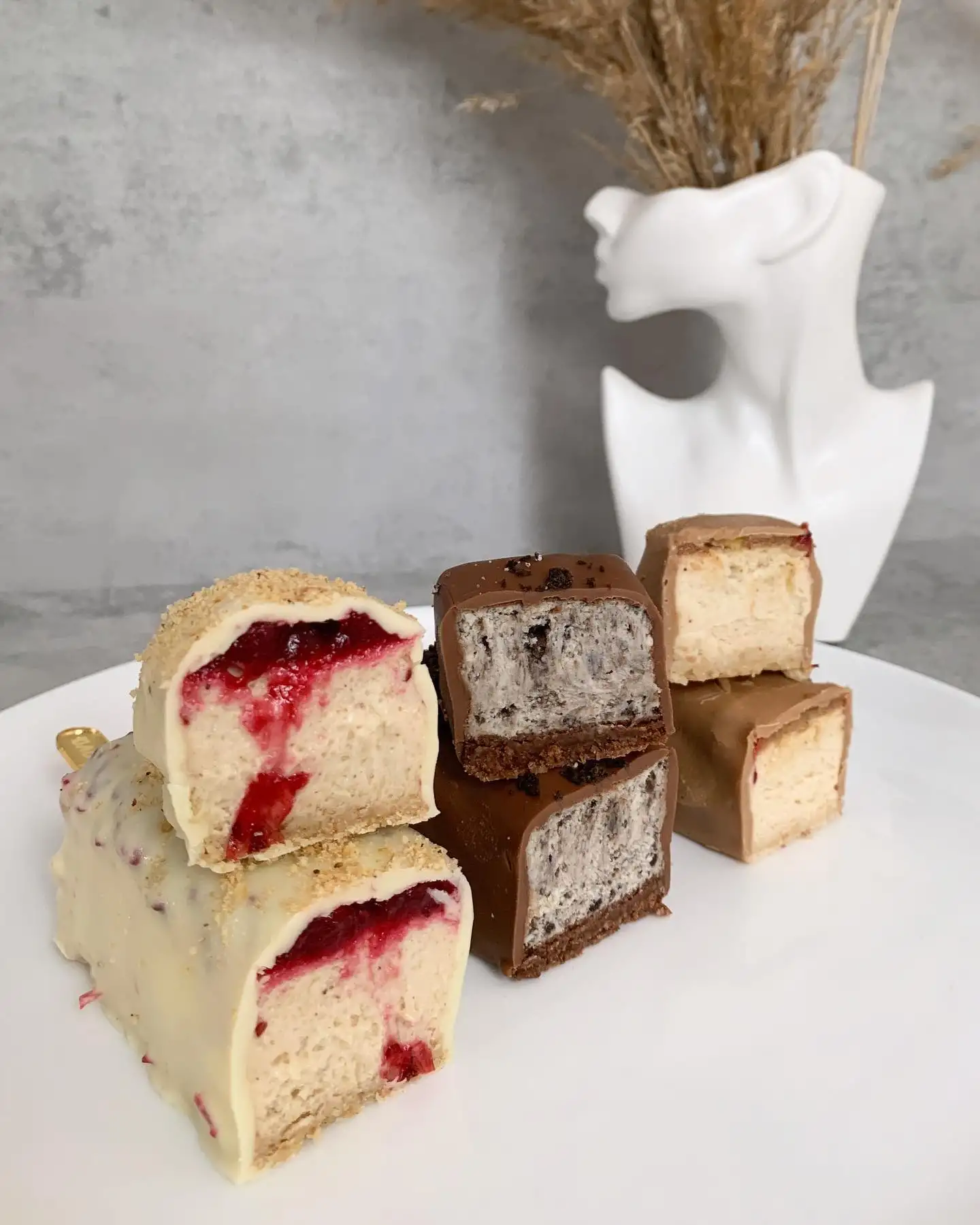 Начинки: — Овсяное печенье с клюквой: хрустящий крамбл, сырная начинка с крошкой овсяного печенья, клюквенный соус и бельгийский шоколад. — Орео — Карамельное яблоко — Банановое крем-брюле