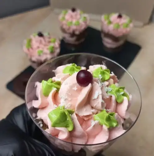 Конфитюр из ежевики и черной смородины, кремчиз, сливки, шоколадное печенье.
