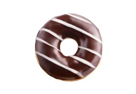 Донат покрыт шоколадной глазурью и декорирован белыми полосками. Полностью готовое изделие, хранить при температуре не ниже −18°С. Перед употреблением блюдо необходимо разморозить при комнатной температуре в течение 60 минут. Срок годности после разморозки 72 часа (при температуре от +4 до +22°С). Вес: 67 г 36 шт./кор.