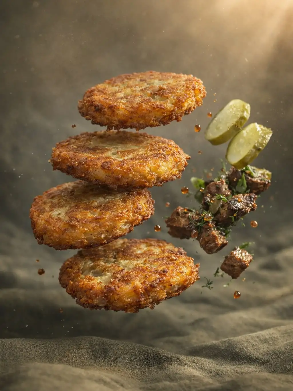 Поджарка из свинины, соленый огурец, сметана