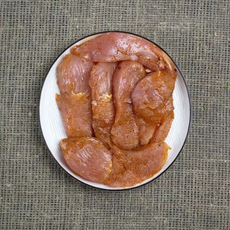 Описание: ароматное и сочное блюдо, приготовленное из нежного мяса индейки, замаринованного в соусах и специях. Филе приобретает насыщенный вкус и аппетитную корочку благодаря маринаду, в который входят соевый и устричный соус, а также смесь перцев и трав. Состав: филе индейки, соевый соус, устричный соус, смесь перцев и трав.