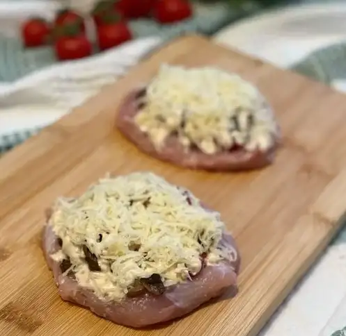 Филе индейки, шампиньоны, цукини, перец сладкий, йогурт греческий, горчица, соль, специи, сыр экспонента