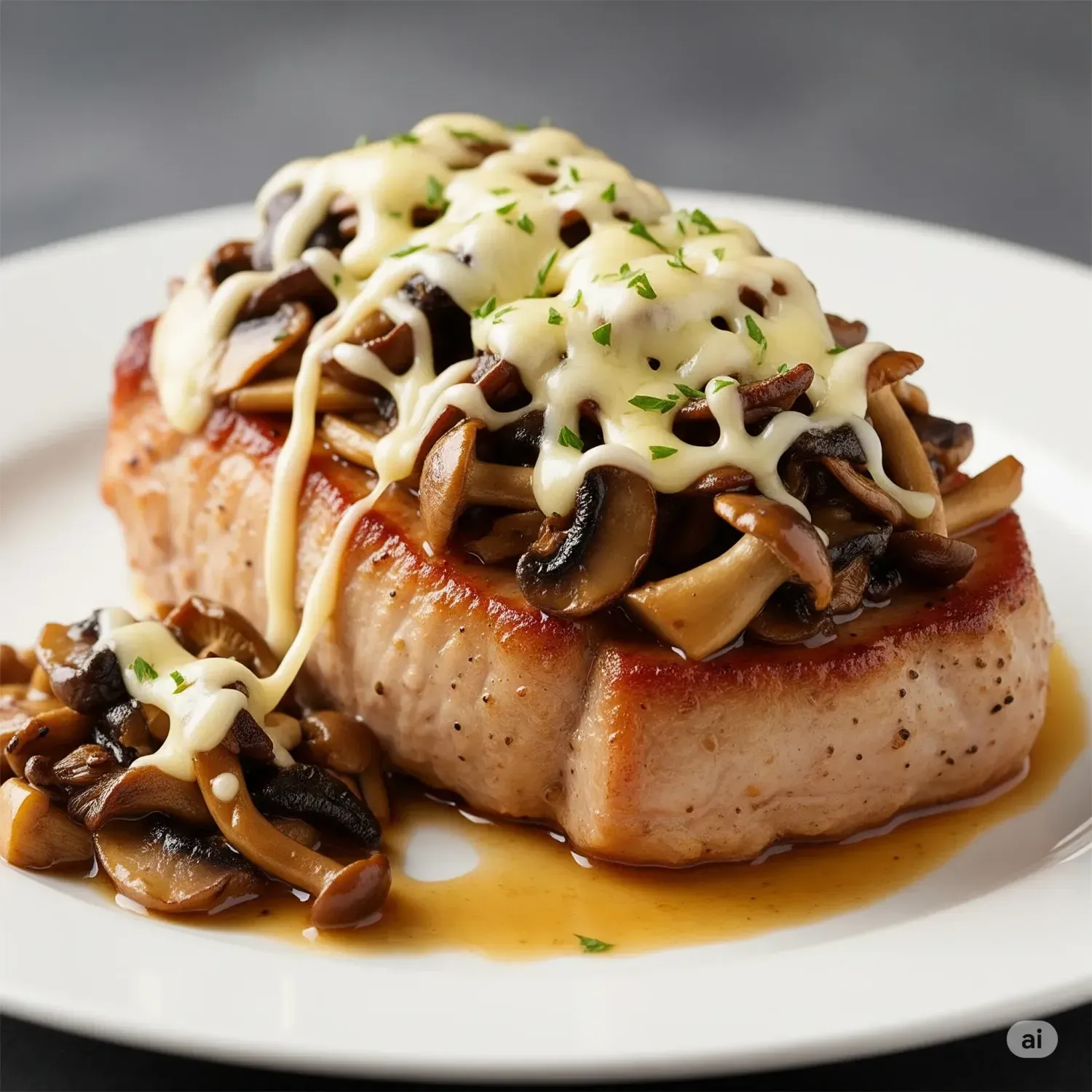 Состав: маринованное свиное филе, грибы, лук, сыр Требует термической обработки