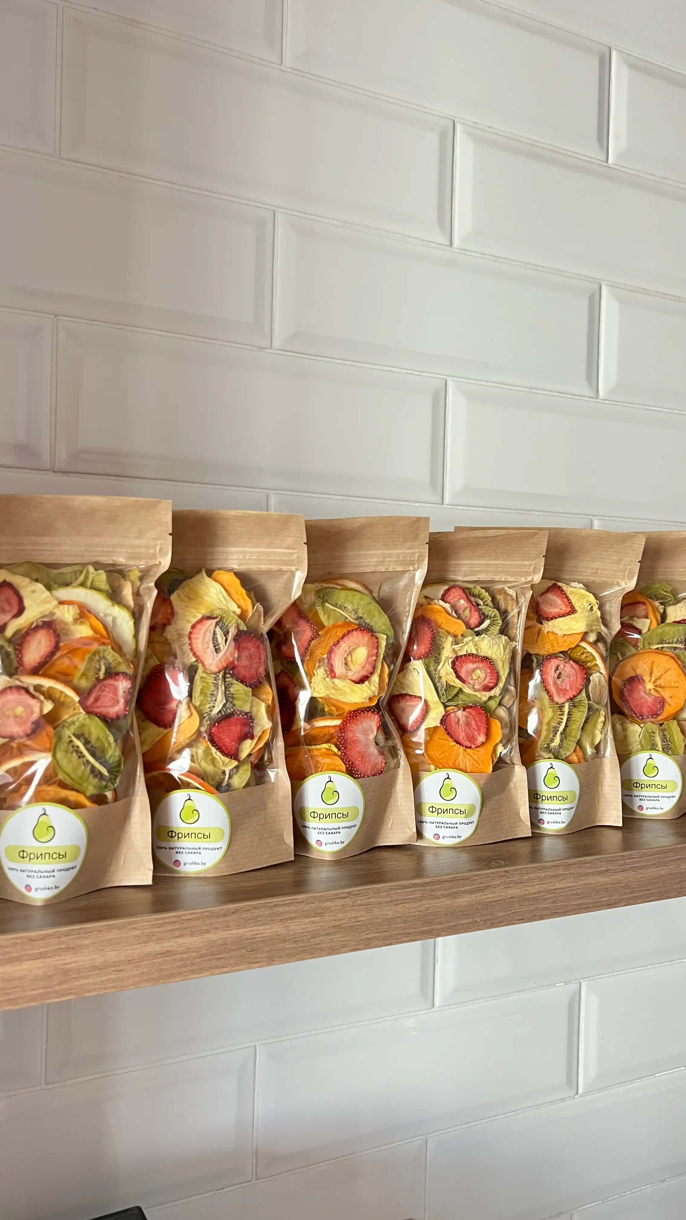 Состав: яблоко, груша, банан, апельсин, ананас, хурма, киви, клубника.