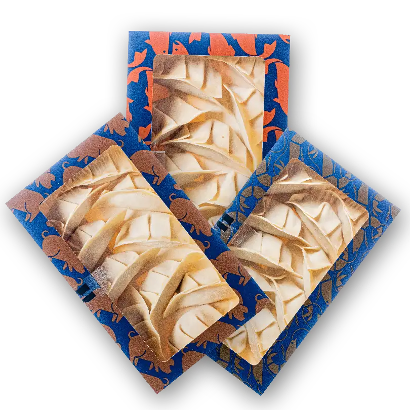 Гёдза — японское блюдо из тонкого теста в форме полумесяца. Начинки для гёдза включают рубленные виды мяса, креветки и рыбы, которые замешаны с мелко нарезанными овощами. Все начинки нарезаются вручную, чтобы сохранить структуру продуктов. Лепятся гёдза тоже только вручную. 3 вида начинки гёдза на выбор: свинина, креветка, лосось.