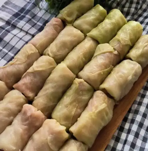 Состав: капуста, фарш свинина-говядина-курица, рис, лук, морковь, соль, специи. В готовом виде +30%
