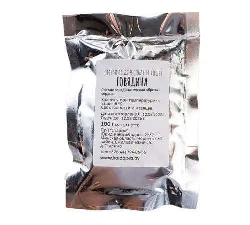 Мелко прокрученный фарш. Говядина: мясная обрезь, сердце. Вакуумная упаковка. Подходит для собак мелких пород (весом до 3-4 кг), всех пород кошек. Рекомендуется давать с 3 месячного возраста, когда питомец уже переведен на сырые натуральные корма. Исключительно натуральный продукт (мясо, субпродукты) Рекомендуется давать в сыром виде, можно употреблять в пищу питомцу сразу после разморозки.