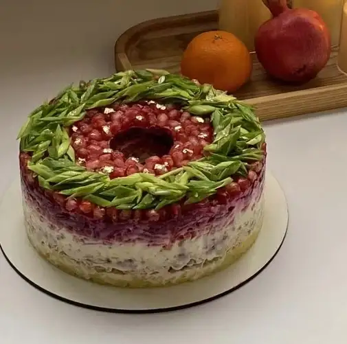 Куриное филе, картофель, морковь, яйца, свекла, грецкий орех, орех, майонез, зелень