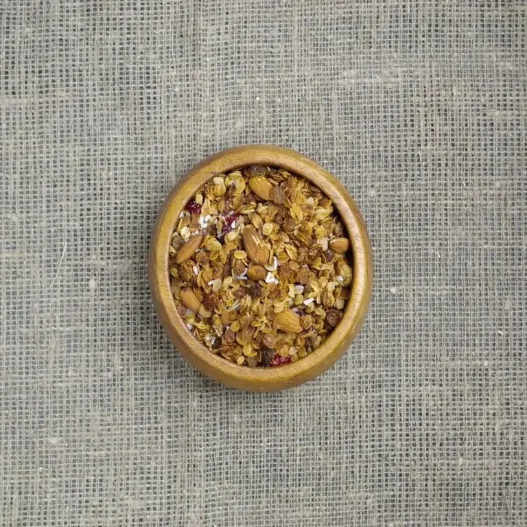 Описание: питательное и хрустящее блюдо, состоящее из чиа, миндаля, сушеной клюквы, изюма и кокосовой стружки, запеченных до золотистого цвета с добавлением меда. Состав: овсяные хлопья, мёд, растительное масло, чиа, миндаль, сушеная клюква, изюм, кокосовая стружка. Вес: 300 г Характеристики: продукт продается полностью в готовом виде и не требует дополнительного приготовления перед употреблением. Способ приготовления: залить гранолу тёплым молоком или добавить йогурт по вкусу.