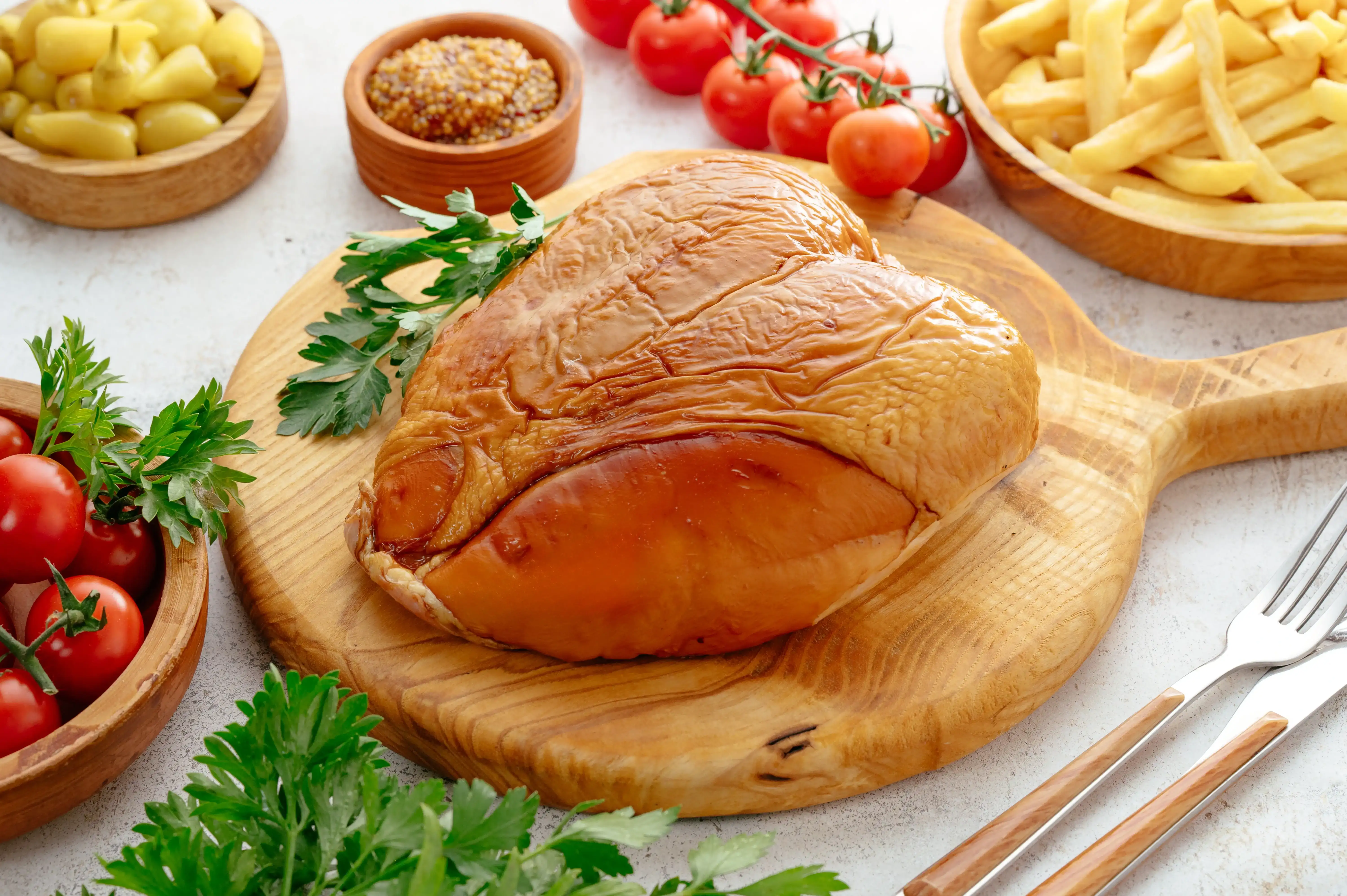 Состав: грудка цыплят-бройлеров, вода питьевая, комплексная пищевая добавка (соль поваренная пищевая (содержит агент антислеживающий Е536), фиксатор окраски Е250, йодат калия), комплексная пищевая добавка (стабилизаторы Е407, Е415, Е450i, регулятор кислотности Е451i, антиокислители Е301, Е300),смесь молочно-белковая (сыворотка молочная сухая, эмульгатор Е 1414, белок коллагеновый говяжий, молоко коровье сухое, клетчатка), комплексная пищевая добавка (экстракты пряностей (кориандр, имбирь, перец черный молотый, декстроза, соль, усилитель вкуса и аромата Е621), комплексная пищевая добавка (консервант Е262i, регулятор кислотности Е331iii, антиокислители (Е330, Е301)). Характеристики: Жиры — 4 г Белки — 21 г Срок годности — 30 суток Энергетическая ценность (калорийность) — 505 кДж/120 ккал