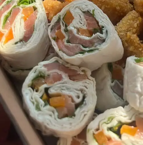 Лаваш, творожный сыр, форель, салат, перец