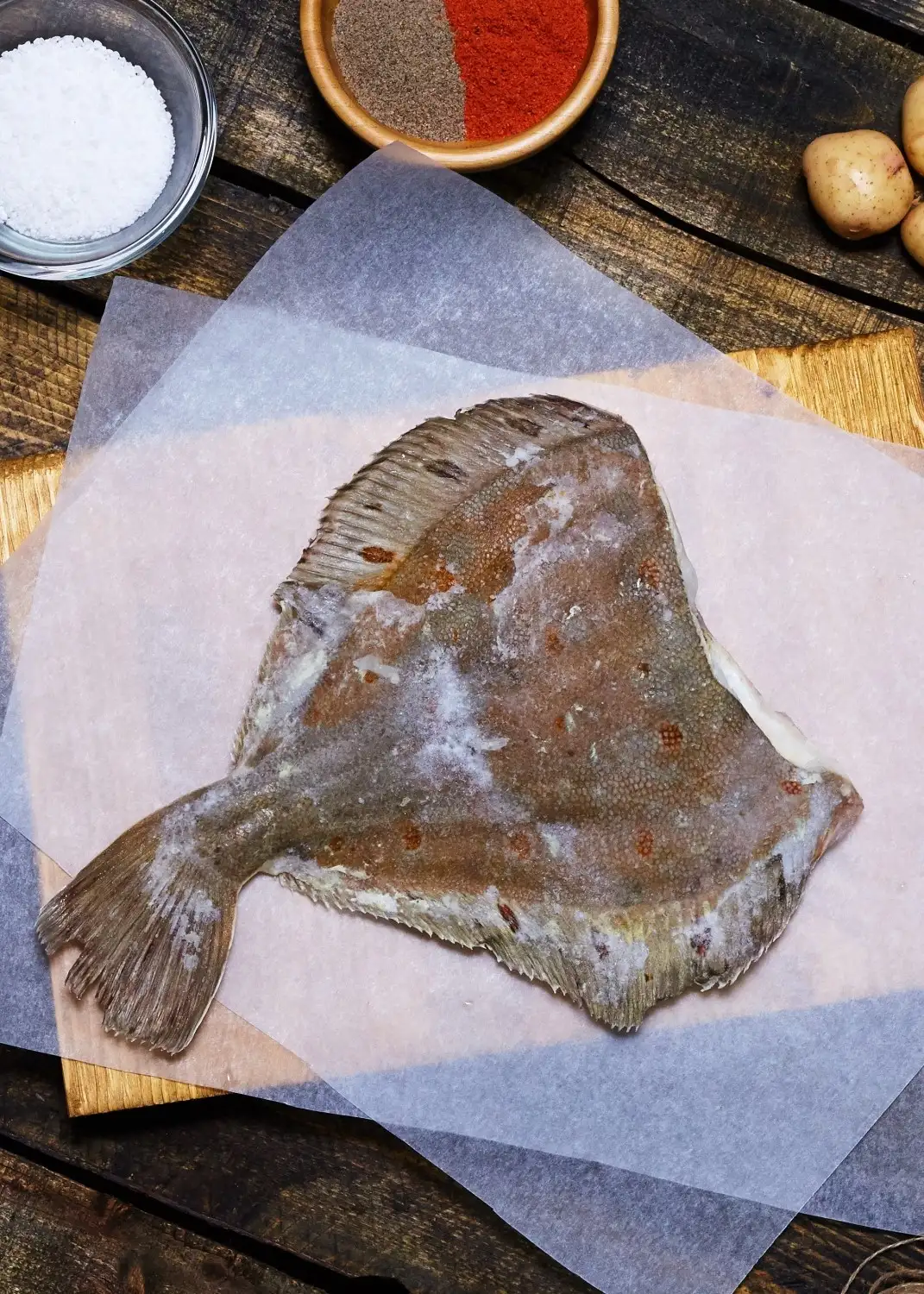 Свежемороженая камбала без головы. Пищевые свойства камбалы позволяют ей считаться фаворитом у любителей морепродуктов, поскольку она имеет мягкий сладковатый вкус и лёгкий йодистый аромат. Изготовитель: Мурманск. Размерный ряд рыбы от 0,5 до 1,0 кг.