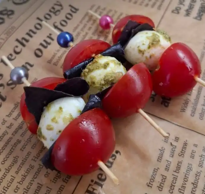 Состав: томаты черри, сыр моцарелла, базилик, соус песто Мин. заказ — 15 шт.