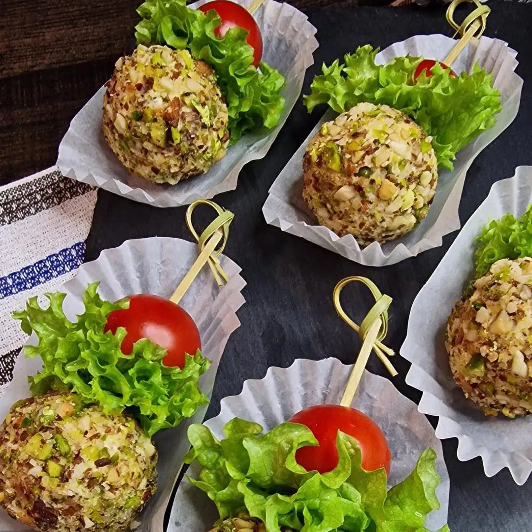 Состав: куриное филе , бекон, сыр творожный, миндаль, помидоры черри.