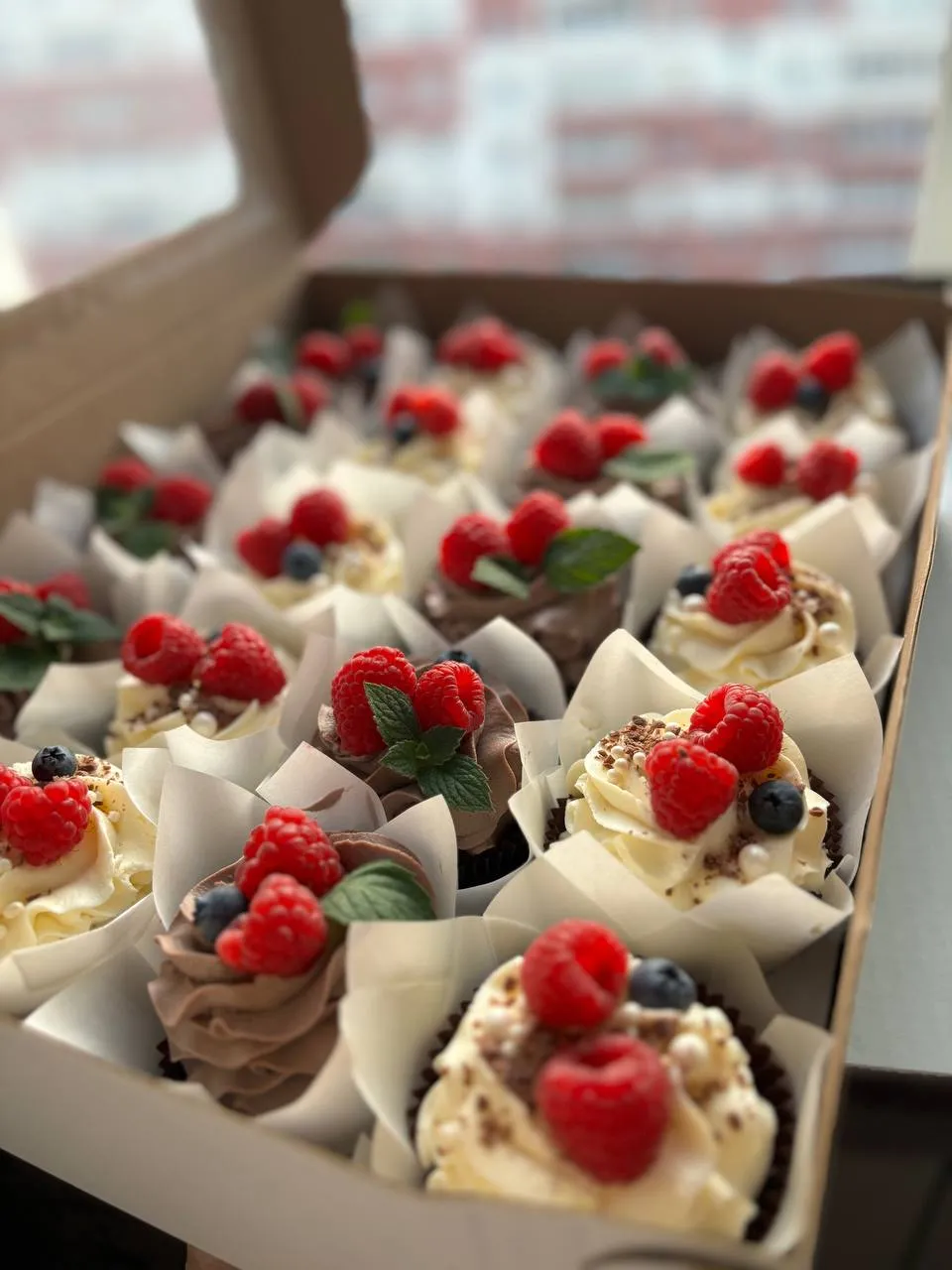 Капкейк- это порционный дессерт, состоящий из маффина, в котором спрятана начинка и кремовая шапочка, украшенная по вашему желанию. Заказ от 6 штук Капкейки могут быть шоколадными, ванильными с ягодными начинками, либо шоколадными, либо с карамелью. Обсуждается индивидуально.
