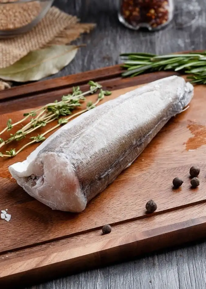 Свежемороженая тушка хека без головы. Мясо этой рыбы широко применяется в диетическом питании и очень хорошо усваивается организмом. Средний вес упаковки 1-1.4 кг