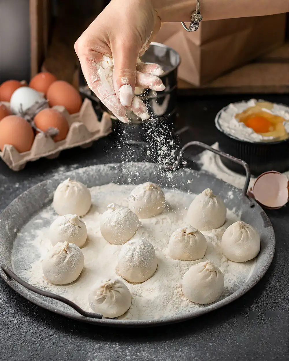 Хинкали домашние — сочные, ароматные грузинские пельмени, приготовленные по традиционному рецепту. Тонкое тесто, щедрая начинка из свежего мяса и пряных специй, с душистым бульоном внутри. Идеальны для сытного обеда или ужина — просто отварите и наслаждайтесь настоящим вкусом домашней кухни!